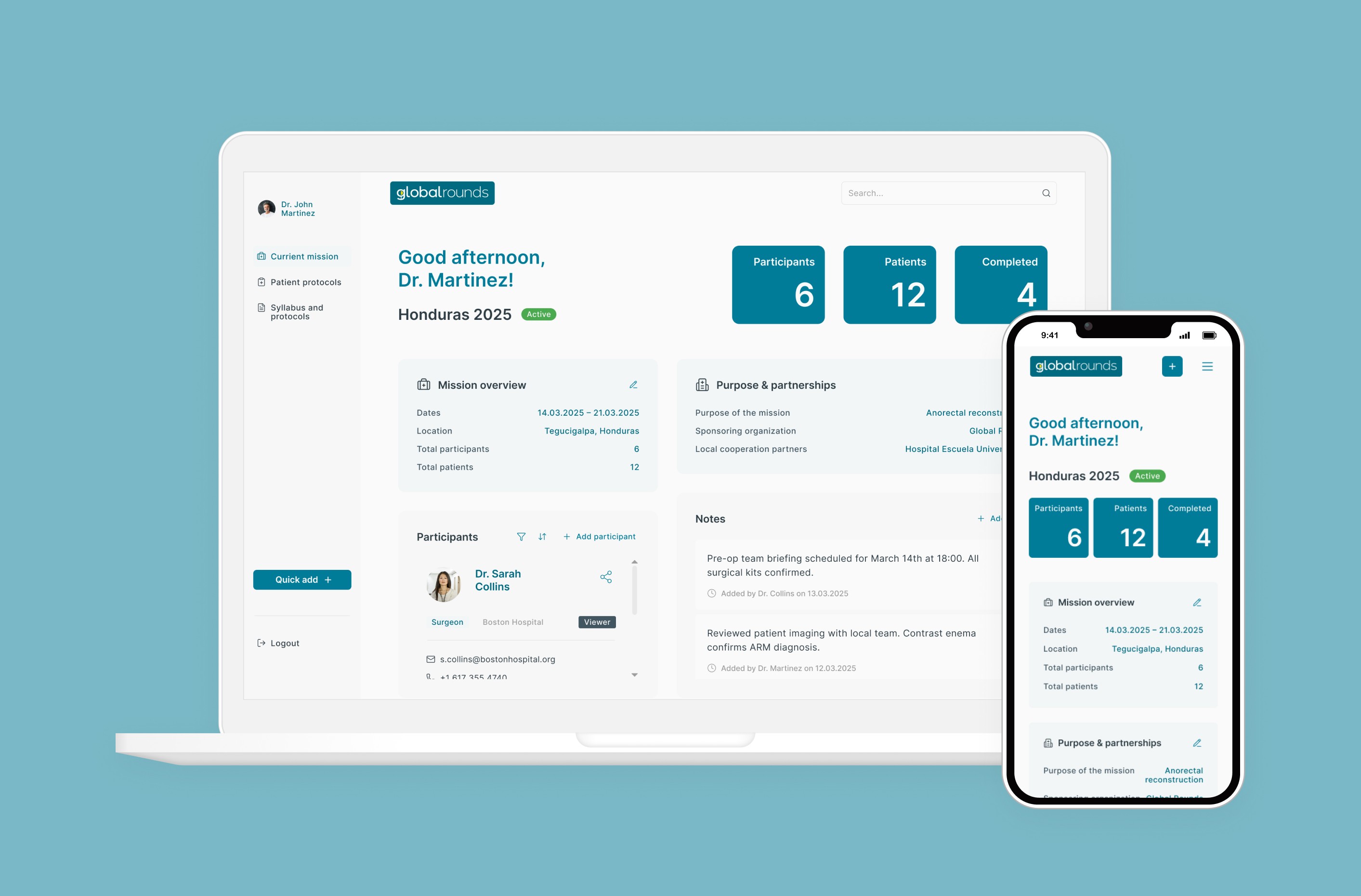 Global Rounds treats between 6 and 40 patients per trip with a team of 5–8 surgeons, nurses, and volunteers. Each mission involves multiple layers of coordination: coordinating logistics, tracking patient histories across multiple visits, documenting complex surgical protocols, and maintaining ongoing contact with both patients and local medical teams after the mission ends.
